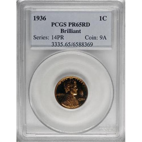 <B>1936 1C Type Two--Brilliant Finish--PR65 Red PCGS.</B></I> Uniformly brilliant with deep cherry-red coloration and fully struck design elements on each side. Nearly perfect, except for a couple of wispy, milky streaks in the upper right obverse field that are difficult to detect without magnification. The Brilliant finish was adopted on proof Lincoln cents in 1936 after Type Ones, with matte-like surfaces, proved unpopular. <BR><BR><B>Coin Engraver:</B> Victor D. Brenner<BR><BR><b>Shipping:</b> Coins & Currency (<a target="_blank" href="http://www.heritageauctions.com/common/shipping.php">view shipping information</a>)