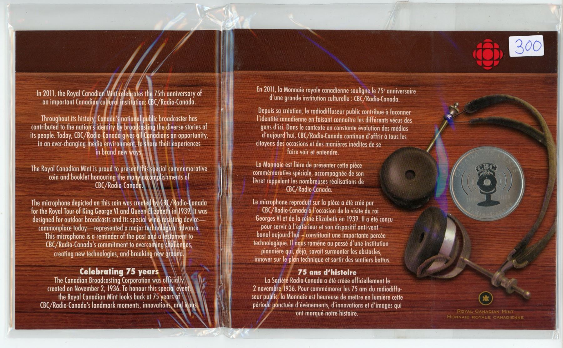 1936-2011 CBC radio Canada 75th anniversary 25 cent commemorative specimen coin and booklet