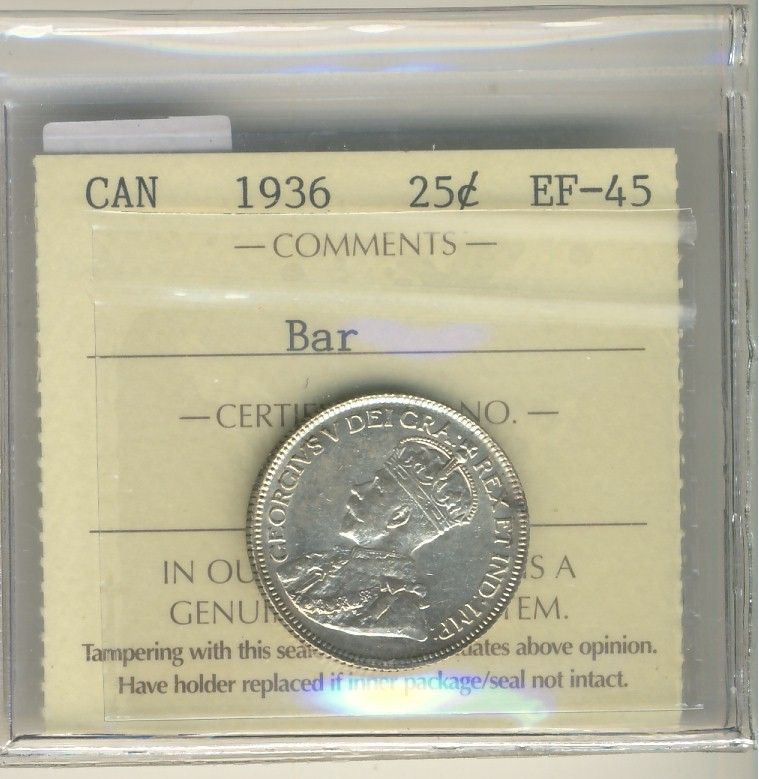 1936 25¢ Bar ICCS EF45.