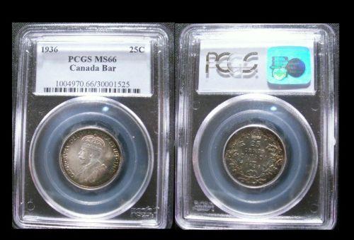 1936 25¢ Bar PCGS MS66. Pristine and stunning to the eye. Superb toning.