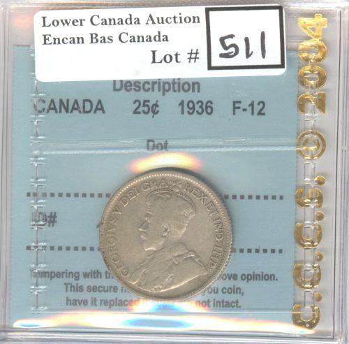 1936 25 ¢, CCCS F-12, Dot