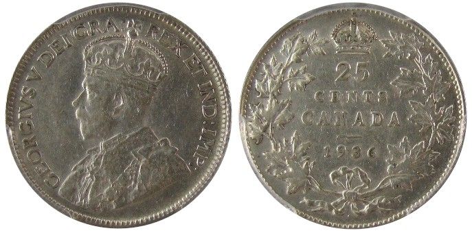 1936 25 Cents, Dot PCGS AU53. Lustrous.