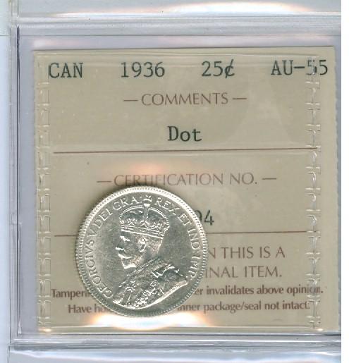 1936 25¢ Dot ICCS AU55. Popular dot issue with lustre.