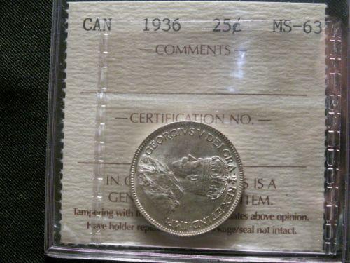1936 25¢ ICCS MS63. Full white and lustrous coin.