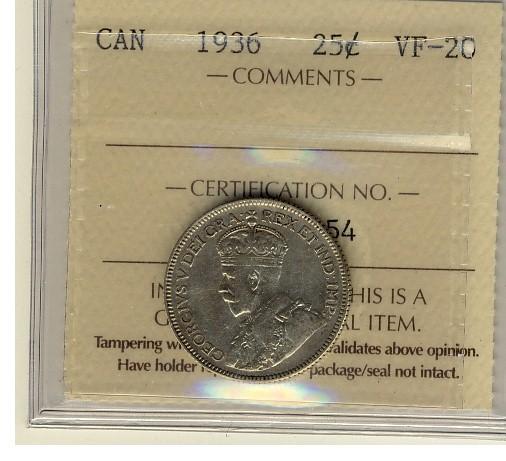 1936 25¢ ICCS VF20