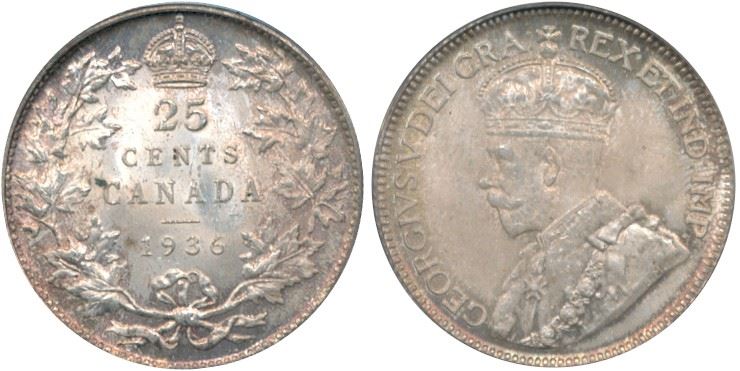 1936 25¢ PCGS MS65. Real nice gem tones.
