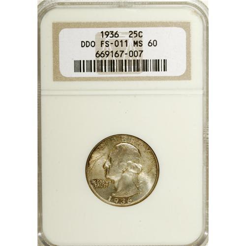 1936 25C --Doubled Die Obverse--MS60 NGC. FS-011. Satin