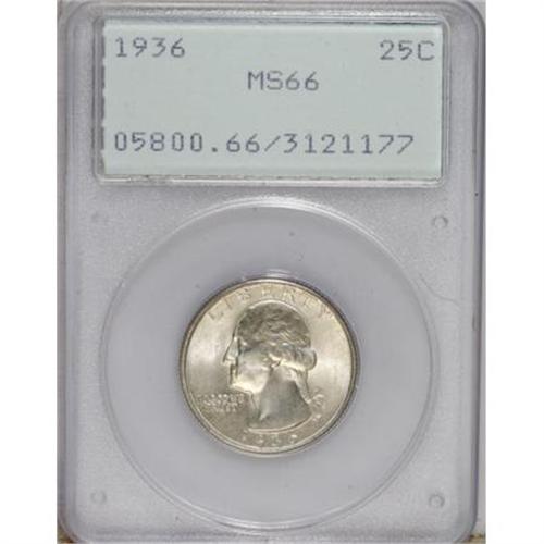 1936 25C MS66 PCGS. PCGS Population (385/52). NGC