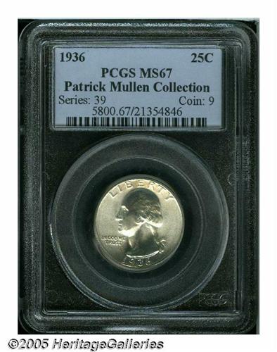 <B>1936<25C> MS67 PCGS.</B></I> This magnificent Superb Gem has potent luster and essentially brilliant surfaces. Seemingly fully struck, and virtually immaculate. Worthy of the finest specialized Registry Set. Population: 43 in 67, 0 finer (4/05).