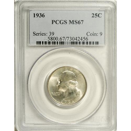 1936 25C MS67 PCGS. Traces of orange-and-cream patina