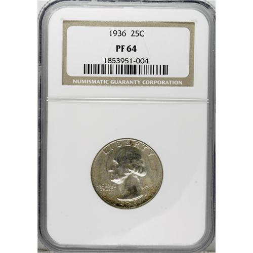 1936 25C PR64 NGC. Choice and moderately reflective be