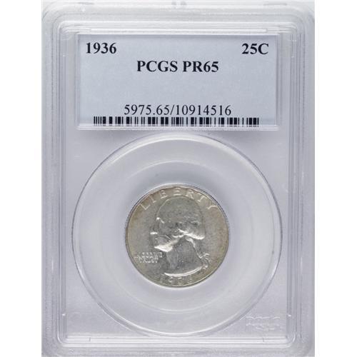 <B>1936 25C PR65 PCGS.</B></I> Hazy olive-gray patina covers much of the obverse, and flecks of russet join that toning on the reverse. A sharply struck Gem from the first proof Washington quarter issue.<BR><BR><b>Shipping:</b> Coin/Currency (<a target="_blank" href="http://www.heritageauctions.com/common/shipping.php">view shipping information</a>)