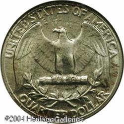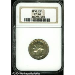 1936 25C PR66 NGC. A smattering of mottled russet <B>1936 25C PR66 NGC.</B></I> A smattering of mottled russet toning deepens shows on both sides with brightly reflective, underlying proof mirrors. A scarce, desirable first year proof issue. Population: 111 in 66, 13 finer (11/04). <BR><BR><B>Important notice:</B> Heritage usually auctions material at the rate of 200-250 lots per hour. On some occasions eBay Live bid software or the Internet may not be able to keep up with the pace of the auction. We recommend placing a realistic absentee bid now as insurance to avoid disappointment. Occasionally the auctioneer may eliminate or reject an eBay Live bid, and the auctioneer may also reopen a lot after the close of the eBay live bidding (usually because we missed an audience bid), and may reject your bid even if it shows you as the winning bidder. By bidding via eBay Live, you agree that Heritage may award the lot to another bidder at its sole discretion under the circumstances described above or any other reasonable circumstances. Since eBay bids are not shown to us until we open the lot on the floor, we treat those bids just like floor bids. In most cases the floor responds before the eBay bid is presented to us, due to Internet lag time, so for consistency we have made it a policy that floor bids are always considered first over tie eBay live bids. Also please note that all Heritage lots purchased through eBay Live carry a 20% Buyer's Premium. Please make sure you read the Terms and Conditions before you bid. This lot is being auctioned in conjunction with a live floor auction by Heritage Galleries & Auctioneers. All final auction and invoice information will be supplied by Heritage Galleries & Auctioneers, and all other information should be considered preliminary. Lot:6009