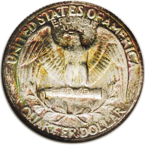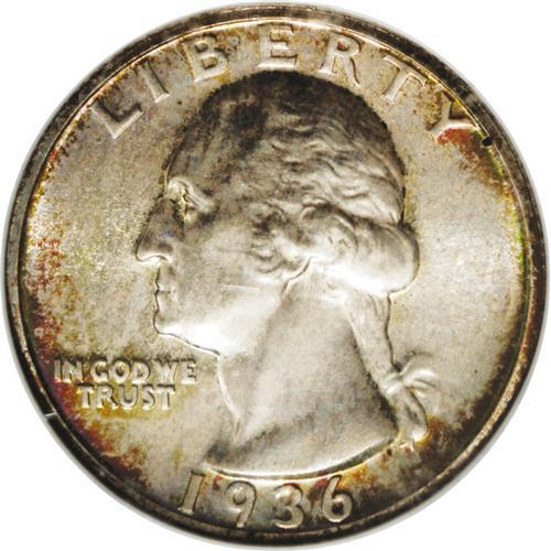 1936 25C PR67 NGC. Iridescent lemon, lime, gold, and s