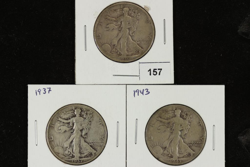 1936,37 & 43 WALKING LIBERTY HALF DOLLARS