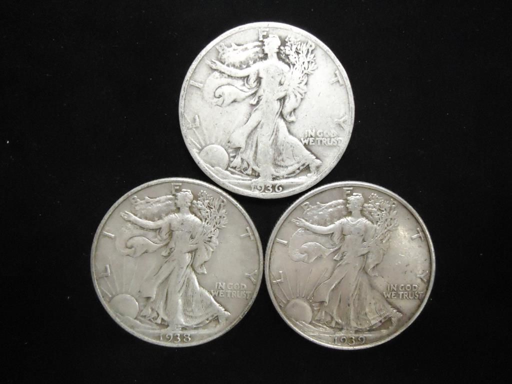 1936,38 & 39 WALKING LIBERTY HALF DOLLARS