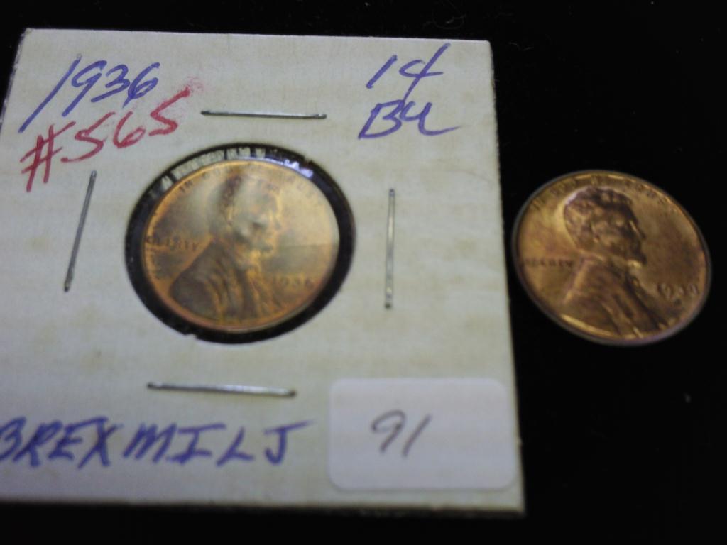1936 & 38-S LINCOLN CENTS (UNC)