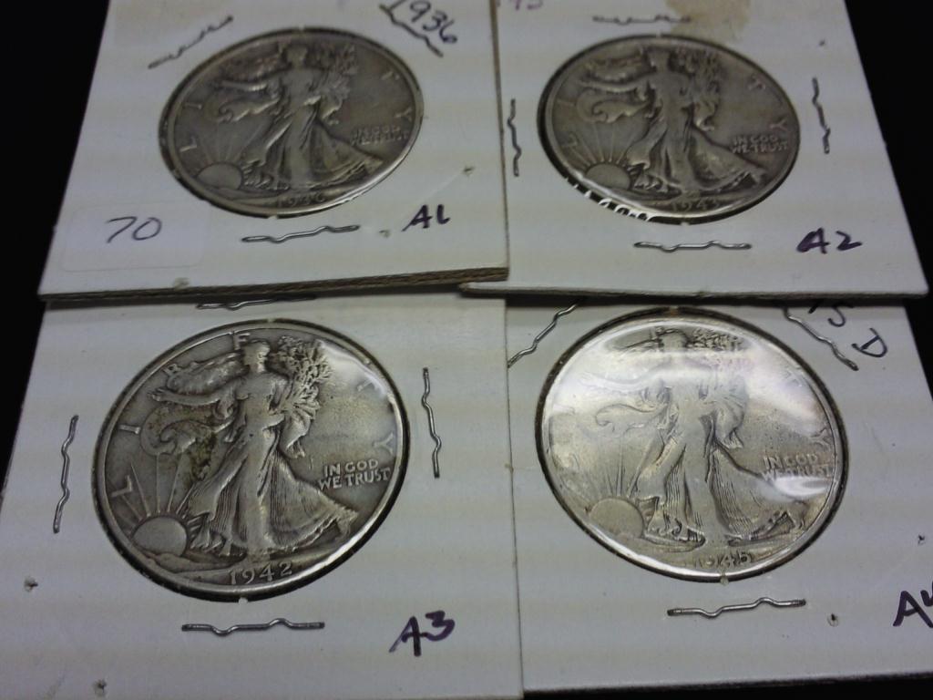 1936, 43, 42-D & 45-D WALKING LIBERTY HALF DOLLARS
