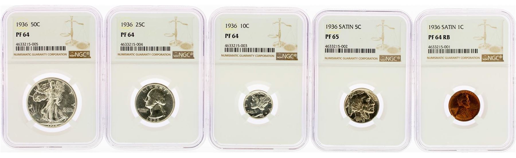 One 1936 (5) Coin Proof Set NGC Graded PF64/65. NGC Certified.