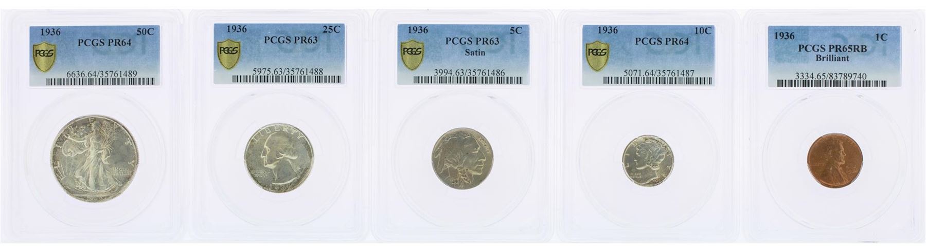 One 1936 (5) Coin Proof Set PCGS Graded PR63/PR64/PR65. PCGS Graded.