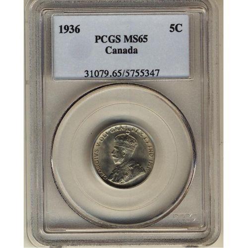 1936 5¢ PCGS MS65 Brilliant with full luster. Excellent strike with clean fields and nice surfaces.