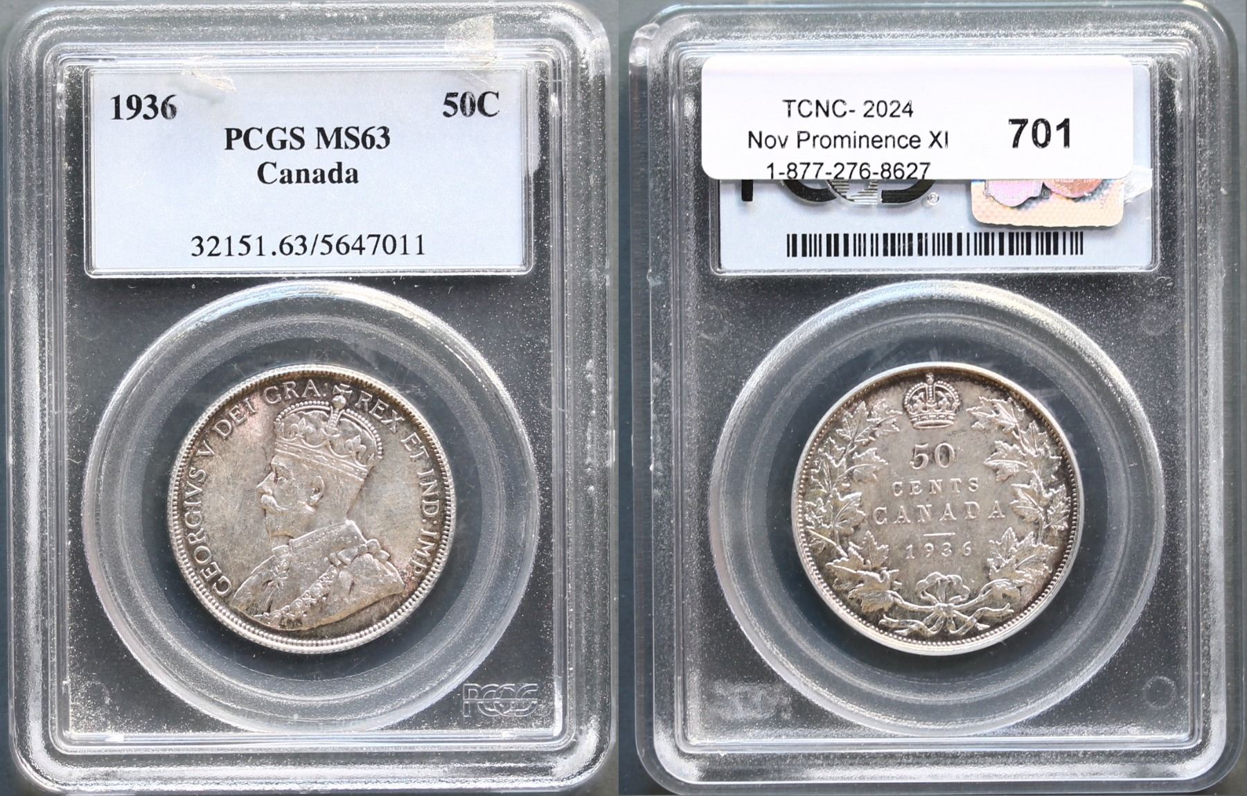 This is an Internet, Live Internet, email, phone and mail auction sale conducted. Information provided by The Canadian Numismatic Company on our web site and in this catalog is strictly AS IS and/or strictly an opinion. No warranty given. Bids are per lot. No lots will be broken. Auction sales are not approval sales. All lots shall be sold to the highest bidder as determined by the auctioneer. If any dispute arises during the sale, the auctioneer has the right to reopen the lot and put it up for sale again. The auctioneer’s decision will be final. In the case of identical (tied) bids during our Live Auctions, the earliest received bid shall take priority. In the case of a tie bid during our Sales, between a mail/fax bid and an Internet bid, the Internet bid will take precedence and obtain the lot. PLEASE CONTACT US IF YOU REQUIRE FURTHER EXPLANATION.