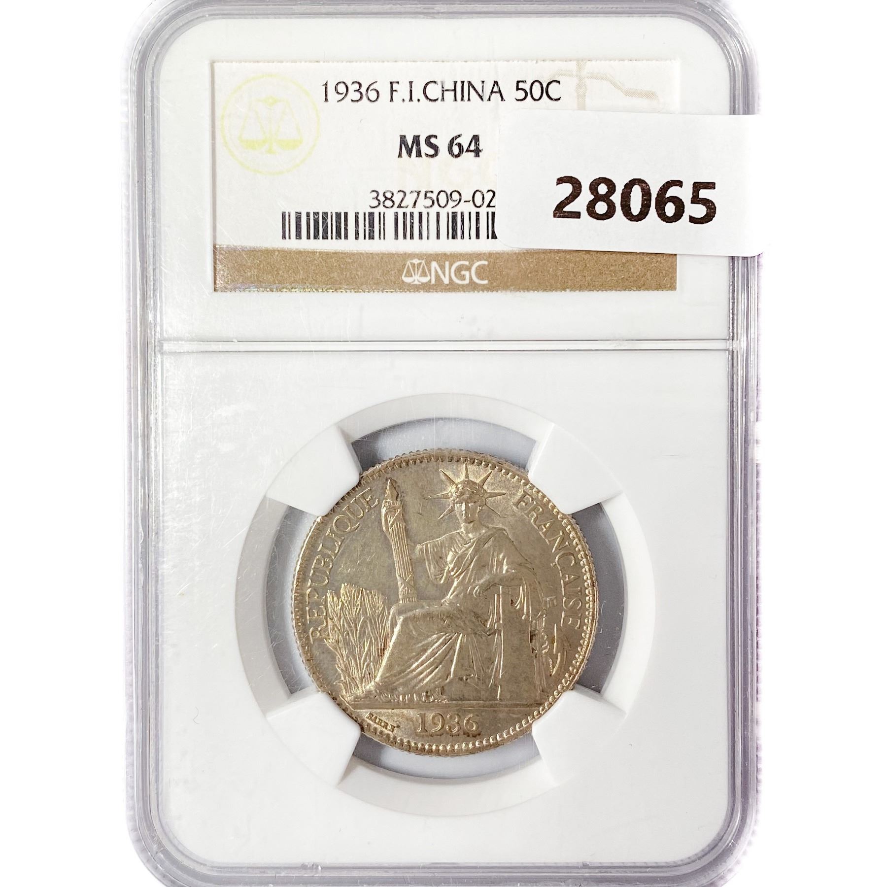1936 50C .4oz F.I. China Silver NGC MS64