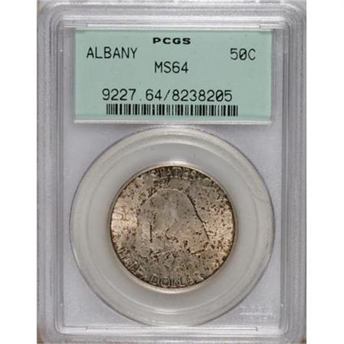 <B>1936 50C Albany MS64 PCGS.</B></I> PCGS Population (1517/2033). NGC Census: (703/1622). Mintage: 17,671. Numismedia Wsl. Price for NGC/PCGS coin in MS64: $308. (#9227)<BR><BR><b>Shipping:</b> Coins & Currency (<a target="_blank" href="http://www.heritageauctions.com/common/shipping.php">view shipping information</a>\)
