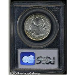 1936 50C Albany MS66 PCGS. Light golden-brown toni <B>1936 50C Albany MS66 PCGS.</B></I> Light golden-brown toning hugs the margins, especially on the reverse. Well struck, with lustrous surfaces that are virtually mark free. <BR><BR><B>Important notice:</B> Heritage usually auctions material at the rate of 200-250 lots per hour. On some occasions eBay Live bid software or the Internet may not be able to keep up with the pace of the auction. We recommend placing a realistic absentee bid now as insurance to avoid disappointment. Occasionally the auctioneer may eliminate or reject an eBay Live bid, and the auctioneer may also reopen a lot after the close of the eBay live bidding (usually because we missed an audience bid), and may reject your bid even if it shows you as the winning bidder. By bidding via eBay Live, you agree that Heritage may award the lot to another bidder at its sole discretion under the circumstances described above or any other reasonable circumstances. Since eBay bids are not shown to us until we open the lot on the floor, we treat those bids just like floor bids. In most cases the floor responds before the eBay bid is presented to us, due to Internet lag time, so for consistency we have made it a policy that floor bids are always considered first over tie eBay live bids. Also please note that all Heritage lots purchased through eBay Live carry a 20% Buyer's Premium. Please make sure you read the Terms and Conditions before you bid. This lot is being auctioned in conjunction with a live floor auction by Heritage Galleries & Auctioneers. All final auction and invoice information will be supplied by Heritage Galleries & Auctioneers, and all other information should be considered preliminary. Lot:7845