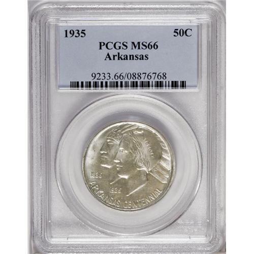 <B>1936<50C> Albany MS66 PCGS,</B></I> subtly lustrous with delicate gold toning over each side; and a <B>1935<50C> Arkansas MS66 PCGS,</B></I> highly lustrous with intermixed lavender and antique-gold patina.