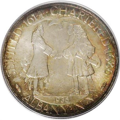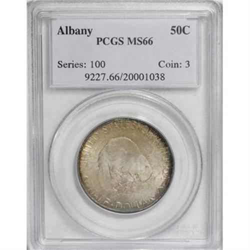 <B>1936 50C Albany MS66 PCGS.</B></I> PCGS Population (658/81). NGC Census: (463/120). Mintage: 17,671. Numismedia Wsl. Price for NGC/PCGS coin in MS66: $595. (#9227)<BR><BR><b>Shipping:</b> Coins & Currency (<a target="_blank" href="http://www.heritageauctions.com/common/shipping.php">view shipping information</a>\)