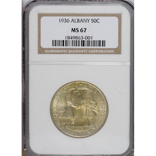 1936 50C Albany MS67 NGC. Gold-toned with zones of sil