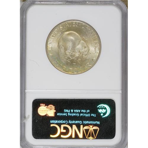 <B>1936 50C Albany MS67 NGC.</B></I> Gold-toned with zones of silver-blue and a splash of orange patina. Remarkably clean, though a few tiny ticks appear on the beaver. NGC has awarded only six MS68+ grades (2/07).<BR><BR><b>Shipping:</b> Coins & Currency (<a target="_blank" href="http://www.heritageauctions.com/common/shipping.php">view shipping information</a>)