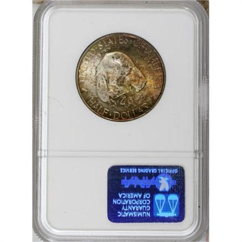 <B>1936 50C Albany MS67 NGC.</B></I> A tab-toned beauty with original orange-red and sea-green patina. Scintillating luster rolls across the unperturbed fields and devices. As of (7/07), NGC has certified just seven pieces finer.<BR><BR><b>Shipping:</b> Coins & Currency (<a target="_blank" href="http://www.heritageauctions.com/common/shipping.php">view shipping information</a>)