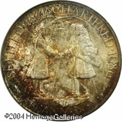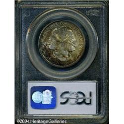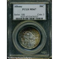 1936 50C Albany MS67 PCGS. Superb sunset-red crims <B>1936 50C Albany MS67 PCGS.</B></I> Superb sunset-red crimson, and antique-golden color dominate each side. Well struck with essentially mark-free surfaces and no visible detractions. Population: 70 in 67, 1 finer (10/04). <BR><BR><B>Important notice:</B> Heritage usually auctions material at the rate of 200-250 lots per hour. On some occasions eBay Live bid software or the Internet may not be able to keep up with the pace of the auction. We recommend placing a realistic absentee bid now as insurance to avoid disappointment. Occasionally the auctioneer may eliminate or reject an eBay Live bid, and the auctioneer may also reopen a lot after the close of the eBay live bidding (usually because we missed an audience bid), and may reject your bid even if it shows you as the winning bidder. By bidding via eBay Live, you agree that Heritage may award the lot to another bidder at its sole discretion under the circumstances described above or any other reasonable circumstances. Since eBay bids are not shown to us until we open the lot on the floor, we treat those bids just like floor bids. In most cases the floor responds before the eBay bid is presented to us, due to Internet lag time, so for consistency we have made it a policy that floor bids are always considered first over tie eBay live bids. Also please note that all Heritage lots purchased through eBay Live carry a 20% Buyer's Premium. Please make sure you read the Terms and Conditions before you bid. This lot is being auctioned in conjunction with a live floor auction by Heritage Galleries & Auctioneers. All final auction and invoice information will be supplied by Heritage Galleries & Auctioneers, and all other information should be considered preliminary. Lot:7846