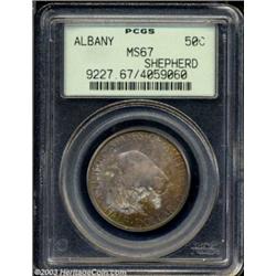 <table><tr><td><TABLE cellSpacing=0 cellPadding=0 width="100%" bgColor=#000000 border=0><TBODY> <TR><TD width="100%"><TABLE cellSpacing=1 cellPadding=3 width="100%" border=0><TBODY><TR><TD width="100%" bgColor=#79735c><FONT face=arial color=#ffffff size=3><B>Description</B> </FONT></TD></TR><TR><TD width="100%" bgColor=#ffffff><FONT face=arial size=2><B>1936 50C Albany MS67 PCGS.</B></I> Spectacularly toned with waves of aqua-marine, ruby-red, orange, and gold colors. An essentially pristine Superb Gem that has satiny luster and an unimprovable strike. Although the PCGS population of Albany Commemoratives in MS67 has reached 64 pieces, with one finer, the present coin has been in its same holder for at least twelve years and is decidedly superior in eye appeal to its equally (and subsequently) graded counterparts.<BR><I>Ex: Larry Shepherd Collection (Superior, 8/1991), lot 5.</B></I><BR><I>From The Sound Beach Collection.</B></I> </FONT></TD></TR></TBODY></TABLE></TD></TR></TBODY></TABLE><BR><A name=PricesRealized></A><TABLE cellSpacing=0 cellPadding=0 width="100%" bgColor=#000000 border=0><TBODY><TR><TD width="100%"><TABLE cellSpacing=1 cellPadding=3 width="100%" border=0><TBODY><TR><TD width="100%" bgColor=#79735c><A name=PR><FONT face=arial color=#ffffff size=3><B>Previous Prices from Heritage Auctions</B> </FONT></A></TD></TR><TR><TD bgColor=#f6f6ed><TABLE cellSpacing=0 cellPadding=0 width="100%" border=1><TBODY><TR><TD align=middle width="33%"><B>Date</B></TD><TD align=middle width="33%"><B>Service</B></TD><TD align=middle width="33%"><B>Price</B></TD></TR><TR bgColor=whitesmoke><TD width="33%"><B>12/04/2001</B></TD><TD width="33%">NGC</TD><TD width="33%">$950.00</TD></TR><TR bgColor=whitesmoke><TD width="33%"><B>09/20/2003</B></TD><TD width="33%">NGC</TD><TD width="33%">$1,035.00</TD></TR><TR bgColor=whitesmoke><TD width="33%"><B>09/20/2003</B></TD><TD width="33%">NGC</TD><TD width="33%">$1,092.50</TD></TR><TR bgColor=whitesmoke><TD width="33%"><B>11/23/2002</B></TD><TD width="33%">NGC</TD><TD width="33%">$1,322.50</TD></TR><TR bgColor=whitesmoke><TD width="33%"><B>11/23/2002</B></TD><TD width="33%">NGC</TD><TD width="33%">$1,006.25</TD></TR><TR bgColor=whitesmoke><TD width="33%"><B>02/23/2002</B></TD><TD width="33%">PCGS</TD><TD width="33%">$1,207.50</TD></TR><TR bgColor=whitesmoke><TD width="33%"><B>01/12/2002</B></TD><TD width="33%">NGC</TD><TD width="33%">$3,450.00</TD></TR><TR bgColor=whitesmoke><TD width="33%"><B>01/12/2002</B></TD><TD width="33%">PCGS</TD><TD width="33%">$1,380.00</TD></TR><TR bgColor=whitesmoke><TD width="33%"><B>01/12/2002</B></TD><TD width="33%">NGC</TD><TD width="33%">$862.50</TD></TR><TR bgColor=whitesmoke><TD width="33%"><B>01/12/2002</B></TD><TD width="33%">NGC</TD><TD width="33%">$2,645.00</TD></TR><TR bgColor=whitesmoke><TD width="33%"><B>11/15/2001</B></TD><TD width="33%">PCGS</TD><TD width="33%">$7,762.50</TD></TR><TR bgColor=whitesmoke><TD width="33%"><B>08/08/2001</B></TD><TD width="33%">PCGS</TD><TD width="33%">$1,207.50</TD></TR><TR bgColor=whitesmoke><TD width="33%"><B>02/23/2001</B></TD><TD width="33%">PCGS</TD><TD width="33%">$1,322.50</TD></TR><TR bgColor=whitesmoke><TD width="33%"><B>02/11/2000</B></TD><TD width="33%">PCGS</TD><TD width="33%">$1,322.50</TD></TR><TR bgColor=whitesmoke><TD width="33%"><B>04/14/2000</B></TD><TD width="33%">NGC</TD><TD width="33%">$891.25</TD></TR><TR bgColor=whitesmoke><TD width="33%"><B>09/24/1999</B></TD><TD width="33%">NGC</TD><TD width="33%">$1,265.00</TD></TR><TR bgColor=whitesmoke><TD width="33%"><B>09/25/1999</B></TD><TD width="33%">NGC</TD><TD width="33%">$1,265.00</TD></TR><TR bgColor=whitesmoke><TD width="33%"><B>08/13/1999</B></TD><TD width="33%">NGC</TD><TD width="33%">$1,150.00</TD></TR><TR bgColor=whitesmoke><TD width="33%"><B>11/07/1998</B></TD><TD width="33%">NGC</TD><TD width="33%">$1,705.00</TD></TR><TR bgColor=whitesmoke><TD width="33%"><B>01/11/1997</B></TD><TD width="33%">PCGS</TD><TD width="33%">$2,242.50</TD></TR><TR bgColor=whitesmoke><TD width="33%"><B>01/06/1996</B></TD><TD width="33%">PCGS</TD><TD width="33%">$1,430.00</TD></TR><TR bgColor=whitesmoke><TD width="33%"><B>07/31/1993</B></TD><TD width="33%">PCGS</TD><TD width="33%">$2,860.00</TD></TR></TBODY></TABLE></TD></TR><TR><TD bgColor=#ffffff><FONT face=arial size=1 ?>PLEASE NOTE: All prices realized reflect the final hammer price PLUS the buyer's premium in auctions that charge a buyer's premium. Each item has a notation at the top of the listing indicating whether that lot included a buyer's premium. Example: A item that sells with a final hammer price of $100 and a 20% buyer's premium will display with a price realized of $120. All information listed is intended to be as accurate as possible, but errors are possible. Please use this guide carefully and inform us of any inaccuracies. </FONT></TD></TR></TBODY></TABLE></TD></TR></TBODY></TABLE><BR><TABLE cellSpacing=0 cellPadding=0 width="100%" bgColor=#000000 border=0><TBODY><TR><TD width="100%"><TABLE cellSpacing=1 cellPadding=3 width="100%" border=0><TBODY><TR><TD width="100%" bgColor=#79735c colSpan=6><FONT face=arial color=#ffffff size=3><B>Price Guide*</B> </FONT></TD></TR><TR bgColor=#f6f6ed><TD align=middle><B>Grade</B> </TD><TD align=middle><B>Coin World<BR>(Trends)</B> </TD><TD align=middle><B>Numismedia<BR>Retail</B> </TD><TD align=middle><B>Numismedia<BR>Wholesale</B> </TD><TD align=middle><B>Coin<BR>Universe</B> </TD><TD align=middle><B>Heritage<BR>Value Index</B> </TD></TR><TR bgColor=#ffffff><TD align=middle>66</TD><TD align=right>$800.00</TD><TD align=right>$540.00</TD><TD align=right>$432.00</TD><TD align=right>$700.00</TD><TD align=right>$466.00</TD></TR><TR style="FONT-WEIGHT: bold" bgColor=#cccfdd><TD align=middle>67</TD><TD align=right>$2,400.00</TD><TD align=right>---</TD><TD align=right>$1,375.00</TD><TD align=right>$2,000.00</TD><TD align=right>$1,371.67</TD></TR><TR bgColor=#ffffff><TD align=middle>68</TD><TD align=right>---</TD><TD align=right>---</TD><