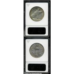 <table><tr><td><table><tr><td>1936 50C Bridgeport MS65 ANACS, freckles of tobacco-brown patina, beautifully preserved; and a 1936 Columbia MS65 ANACS, sky-blue and peach colors, the obverse is extremely clean.From the Frank O. Fredericks Collection, Part 4. 2 Coins <BR><BR><B>Important notice:</B> Heritage usually auctions material at the rate of 200-250 lots per hour. On some occasions eBay Live bid software or the Internet may not be able to keep up with the pace of the auction. We recommend placing a realistic absentee bid now as insurance to avoid disappointment. Occasionally the auctioneer may eliminate or reject an eBay Live bid, and the auctioneer may also reopen a lot after the close of the eBay live bidding (usually because we missed an audience bid), and may reject your bid even if it shows you as the winning bidder. By bidding via eBay Live, you agree that Heritage may award the lot to another bidder at its sole discretion under the circumstances described above or any other reasonable circumstances. Since eBay bids are not shown to us until we open the lot on the floor, we treat those bids just like floor bids. In most cases the floor responds before the eBay bid is presented to us, due to Internet lag time, so for consistency we have made it a policy that floor bids are always considered first over tie eBay live bids. Also please note that all Heritage lots purchased through eBay Live carry a 20% Buyer's Premium. Please make sure you read the Terms and Conditions before you bid. <BR><BR><B>IMPORTANT ANNOUNCEMENT ABOUT RESERVES:</B> Heritage now divulges all reserves on its web site 7 days before every auction. If you want to know whether the reserve on this lot has been met, and if not, what the reserve amount is, please visit this lot page on the HeritageCoin.com web site, or email: bid@HeritageGalleries.com </span></font></td></tr></table></td></tr></table>