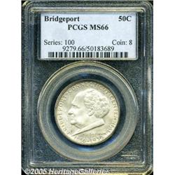 <B>1936 50C Bridgeport MS66 PCGS.</B></I> Creamy battleship-gray and steel-blue colors embrace this original and satiny premium Gem. The strike is exacting, and the surfaces are virtually pristine. Minor strike doubling is observed on the reverse.