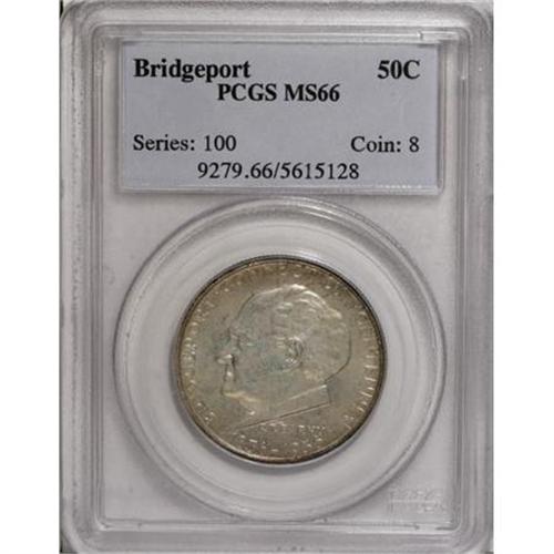 <B>1936 50C Bridgeport MS66 PCGS. </B></I>Population: 617 in 66, 61 finer (12/07).Census: 307 in 66, 18 finer (12/07).<BR><BR><b>Shipping:</b> Coins & Currency (<a target="_blank" href="http://www.heritageauctions.com/common/shipping.php">view shipping information</a>)