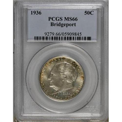 <B>1936 50C Bridgeport MS66 PCGS.</B></I> PCGS Population (626/61). NGC Census: (302/18). Mintage: 25,015. Numismedia Wsl. Price for NGC/PCGS coin in MS66: $380. (#9279)<BR><BR><b>Shipping:</b> Coins & Currency (<a target="_blank" href="http://www.heritageauctions.com/common/shipping.php">view shipping information</a>)