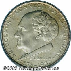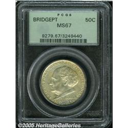 <B>1936 50C Bridgeport MS67 PCGS.</B></I> Fully struck and exquisitely preserved, with highly lustrous, originally toned silver-gray and reddish-golden surfaces. There are a couple of faint contact marks near centers of each side. Population: 47 in 67, 0 finer (2/05).