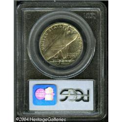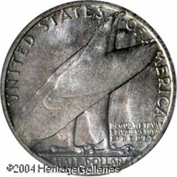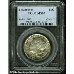 1936 50C Bridgeport MS67 PCGS. This lot also inclu <B>1936 50C Bridgeport MS67 PCGS.</B></I> This lot also includes a near-mint original blue and gold box of issue, and its outer shipping box complete with 6 1/2 cents worth of postage. Iridescent gold, crimson-red, pastel-lilac, and sky-blue colors exchange turns as the coin is rotated under a light. The fields have good luster and are remarkably free from most distracting abrasions, a couple of curving marks are seen across the eagle on the reverse. This is a well struck Commemorative with some strike doubling seen on the reverse legend. One would be hard pressed to obtain a better example of this variety complete with the box of issue. Population: 47 in 67, 0 finer (11/04). <BR><BR><B>Important notice:</B> Heritage usually auctions material at the rate of 200-250 lots per hour. On some occasions eBay Live bid software or the Internet may not be able to keep up with the pace of the auction. We recommend placing a realistic absentee bid now as insurance to avoid disappointment. Occasionally the auctioneer may eliminate or reject an eBay Live bid, and the auctioneer may also reopen a lot after the close of the eBay live bidding (usually because we missed an audience bid), and may reject your bid even if it shows you as the winning bidder. By bidding via eBay Live, you agree that Heritage may award the lot to another bidder at its sole discretion under the circumstances described above or any other reasonable circumstances. Since eBay bids are not shown to us until we open the lot on the floor, we treat those bids just like floor bids. In most cases the floor responds before the eBay bid is presented to us, due to Internet lag time, so for consistency we have made it a policy that floor bids are always considered first over tie eBay live bids. Also please note that all Heritage lots purchased through eBay Live carry a 20% Buyer's Premium. Please make sure you read the Terms and Conditions before you bid. This lot is being auctioned in conjunction with a live floor auction by Heritage Galleries & Auctioneers. All final auction and invoice information will be supplied by Heritage Galleries & Auctioneers, and all other information should be considered preliminary. Lot:7870