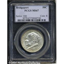 <B>1936<50C> Bridgeport MS67 PCGS.</B></I> Fully struck and exquisitely preserved, with bright, highly lustrous, silver-gray surfaces. There are a couple of faint contact marks near the center of the obverse, but the are only visible under light magnification. A rare and elusive opportunity for the commemorative enthusiast. Population: 44 in 67, none finer at either service (3/04).<BR><I>From The Del Rio Collection, Part One.</B></I> <BR><BR><B>Important notice:</B> Heritage usually auctions material at the rate of 200-250 lots per hour. On some occasions eBay Live bid software or the Internet may not be able to keep up with the pace of the auction. We recommend placing a realistic absentee bid now as insurance to avoid disappointment. Occasionally the auctioneer may eliminate or reject an eBay Live bid, and the auctioneer may also reopen a lot after the close of the eBay live bidding (usually because we missed an audience bid), and may reject your bid even if it shows you as the winning bidder. By bidding via eBay Live, you agree that Heritage may award the lot to another bidder at its sole discretion under the circumstances described above or any other reasonable circumstances. Since eBay bids are not shown to us until we open the lot on the floor, we treat those bids just like floor bids. In most cases the floor responds before the eBay bid is presented to us, due to Internet lag time, so for consistency we have made it a policy that floor bids are always considered first over tie eBay live bids. Also please note that all Heritage lots purchased through eBay Live carry a 20% Buyer's Premium. Please make sure you read the Terms and Conditions before you bid. </span></font></tr></table></td></tr></table>