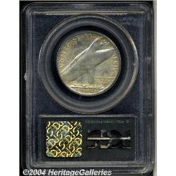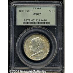 <B>1936<50C> Bridgeport MS67 PCGS.</B></I> Fully struck and exquisitely preserved, with highly lustrous, originally toned silver-gray and reddish-golden surfaces. There are a couple of faint contact marks near centers of each side. Population: 44 in 67, 0 finer (3/04). <BR><BR><B>Important notice:</B> Heritage usually auctions material at the rate of 200-250 lots per hour. On some occasions eBay Live bid software or the Internet may not be able to keep up with the pace of the auction. We recommend placing a realistic absentee bid now as insurance to avoid disappointment. Occasionally the auctioneer may eliminate or reject an eBay Live bid, and the auctioneer may also reopen a lot after the close of the eBay live bidding (usually because we missed an audience bid), and may reject your bid even if it shows you as the winning bidder. By bidding via eBay Live, you agree that Heritage may award the lot to another bidder at its sole discretion under the circumstances described above or any other reasonable circumstances. Since eBay bids are not shown to us until we open the lot on the floor, we treat those bids just like floor bids. In most cases the floor responds before the eBay bid is presented to us, due to Internet lag time, so for consistency we have made it a policy that floor bids are always considered first over tie eBay live bids. Also please note that all Heritage lots purchased through eBay Live carry a 20% Buyer's Premium. Please make sure you read the Terms and Conditions before you bid. </span></font></tr></table></td></tr></table>