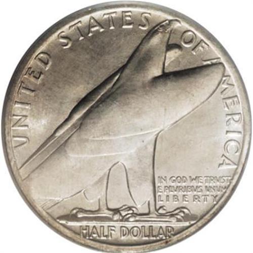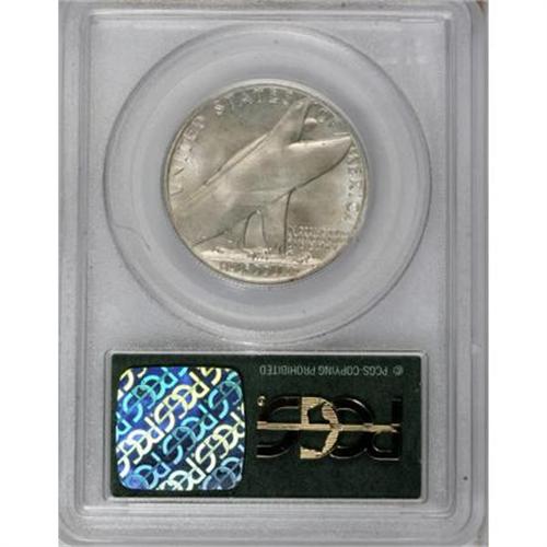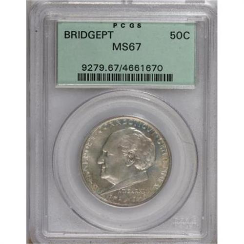 <B>1936 50C Bridgeport MS67 PCGS.</B></I> The obverse of this Superb Gem has satiny luster with subtle reflectivity in the fields and the reverse has frosty luster. Faint champagne and gold toning appears on each side. This example, in a green-label PCGS holder, is tied for the finest certified. Population: 59 in 67, 0 finer (8/07).<BR><BR><b>Shipping:</b> Coins & Currency (<a target="_blank" href="http://www.heritageauctions.com/common/shipping.php">view shipping information</a>)