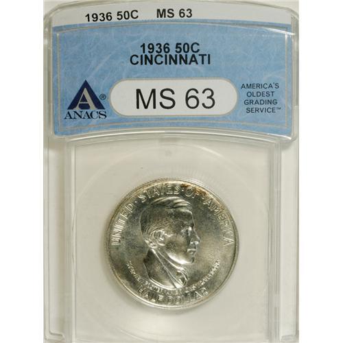 1936 50C Cincinnati MS63 ANACS. NGC Census: (66/61