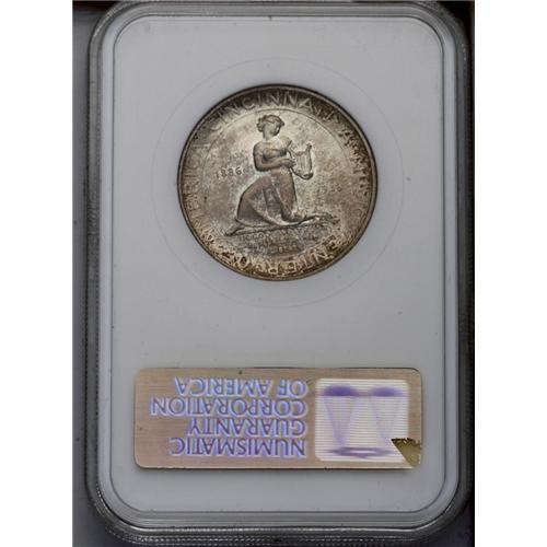 <B>1936<50C> Cincinnati MS65 NGC.</B></I> Light, translucent pastel rose-gold and lilac toning over dove-gray surfaces, with darker flecks of gray, through which considerable luster shines. Light ticks on Stephen Foster's face limit a higher grade. Appealing! <BR><BR><B>Important notice:</B> Heritage usually auctions material at the rate of 200-250 lots per hour. On some occasions eBay Live bid software or the Internet may not be able to keep up with the pace of the auction. We recommend placing a realistic absentee bid now as insurance to avoid disappointment. Occasionally the auctioneer may eliminate or reject an eBay Live bid, and the auctioneer may also reopen a lot after the close of the eBay live bidding (usually because we missed an audience bid), and may reject your bid even if it shows you as the winning bidder. By bidding via eBay Live, you agree that Heritage may award the lot to another bidder at its sole discretion under the circumstances described above or any other reasonable circumstances. Since eBay bids are not shown to us until we open the lot on the floor, we treat those bids just like floor bids. In most cases the floor responds before the eBay bid is presented to us, due to Internet lag time, so for consistency we have made it a policy that floor bids are always considered first over tie eBay live bids. Also please note that all Heritage lots purchased through eBay Live carry a 20% Buyer's Premium. Please make sure you read the Terms and Conditions before you bid. This lot is being auctioned in conjunction with a live floor auction by Heritage Galleries & Auctioneers. All final auction and invoice information will be supplied by Heritage Galleries & Auctioneers, and all other information should be considered preliminary. Lot:4904 <BR><BR><B>Winning Notification and Billing:</B> After the FINAL session in this auction is complete, Heritage will send e-mail and snail mail invoices. This process normally takes several days. All final auction and invoice information will be supplied by Heritage Galleries & Auctioneers, and all other information should be considered preliminary. <BR><BR>This auction will be conducted on a live auction floor and over the Internet through eBay Live. If you choose to place an absentee bid, please take a moment to <font color='#0000ff'><u><a href='http://pages.ebay.com/liveauctions/help/before/laabsentee.html'>learn how eBay Live absentee bidding works</a></u></font><font color='#000000'>