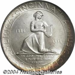 <B>1936<50C> Cincinnati MS66 PCGS.</B></I> Rose, gold, and apple-green colors embrace the borders, while the centers of this reasonably struck premium Gem offer lighter cream-gray and lemon hues. A carefully preserved example of this low mintage and conditionally challenging issue. The Cincinnati PDS set is infamous as an exploitative issue, since it does not commemorate a specific event and features an individual (Stephen Foster) with only tenuous ties to the city. However, its contemporary notoriety does not deny its current status as among the more desirable types. Population: 63 in 66, 2 finer (6/04).<BR><I>Ex: FUN Signature Sale (Heritage, 1/03), lot 9596, which realized $1,897.50.</B></I><BR><I>From the JFS Collection, the #1 All-Time PCGS Registry Set.</B></I> <BR><BR><B>Important notice:</B> Heritage usually auctions material at the rate of 200-250 lots per hour. On some occasions eBay Live bid software or the Internet may not be able to keep up with the pace of the auction. We recommend placing a realistic absentee bid now as insurance to avoid disappointment. Occasionally the auctioneer may eliminate or reject an eBay Live bid, and the auctioneer may also reopen a lot after the close of the eBay live bidding (usually because we missed an audience bid), and may reject your bid even if it shows you as the winning bidder. By bidding via eBay Live, you agree that Heritage may award the lot to another bidder at its sole discretion under the circumstances described above or any other reasonable circumstances. Since eBay bids are not shown to us until we open the lot on the floor, we treat those bids just like floor bids. In most cases the floor responds before the eBay bid is presented to us, due to Internet lag time, so for consistency we have made it a policy that floor bids are always considered first over tie eBay live bids. Also please note that all Heritage lots purchased through eBay Live carry a 20% Buyer's Premium. Please make sure you read the Terms and Conditions before you bid. </span></font></tr></table></td></tr></table>