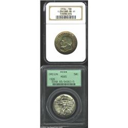 1936 50C Cleveland MS65 NGC, original golden-brown patina, the reverse has the coveted 'tab toning', sharply struck and lustrous with impressive surfaces; and a 1926 Oregon MS65 PCGS, lustrous and immaculate with a bold strike and wispy streaks of charcoal patina. 2 coins Important notice: We expect to be auctioning lots at the rate of 200-250 per hour. Sometimes eBay Premier live bid software cannot keep up with that pace, so we strongly recommend that you place a realistic proxy bid now as insurance to avoid disappointment. Also please note that all Heritage/CAA lots purchased through eBay Premier carry a 20% Buyer's Premium. Please make sure you read the Terms and Conditions.