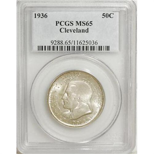 <B>1936 50C Cleveland MS65 PCGS.</B></I> PCGS Population (1812/581). NGC Census: (1897/525). Mintage: 50,030. Numismedia Wsl. Price for NGC/PCGS coin in MS65: $208. (#9288)<BR><I>From The Frank DuVall Collection of U.S. Commemoratives.</B></I><BR><BR><b>Shipping:</b> Coins & Currency (<a target="_blank" href="http://www.heritageauctions.com/common/shipping.php">view shipping information</a>\)